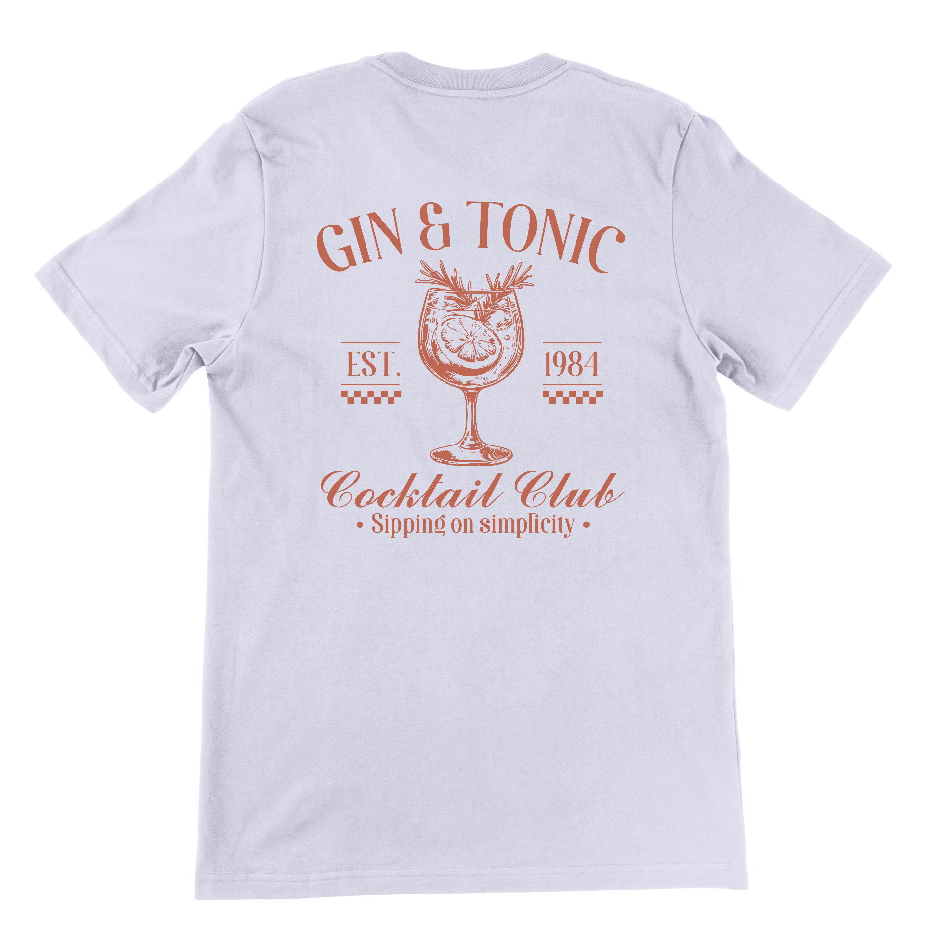 Simplicity never tasted so good. Het Gin & Tonic Cocktail Club T-shirt is jouw uitnodiging tot ontspanning, stijl en een beetje retro flair. Gemaakt van 100% biologisch katoen en voorzien van een rugprint met een klassieke G&T-illustratie, speelse vintage typografie en de quote "Sipping on simplicity".